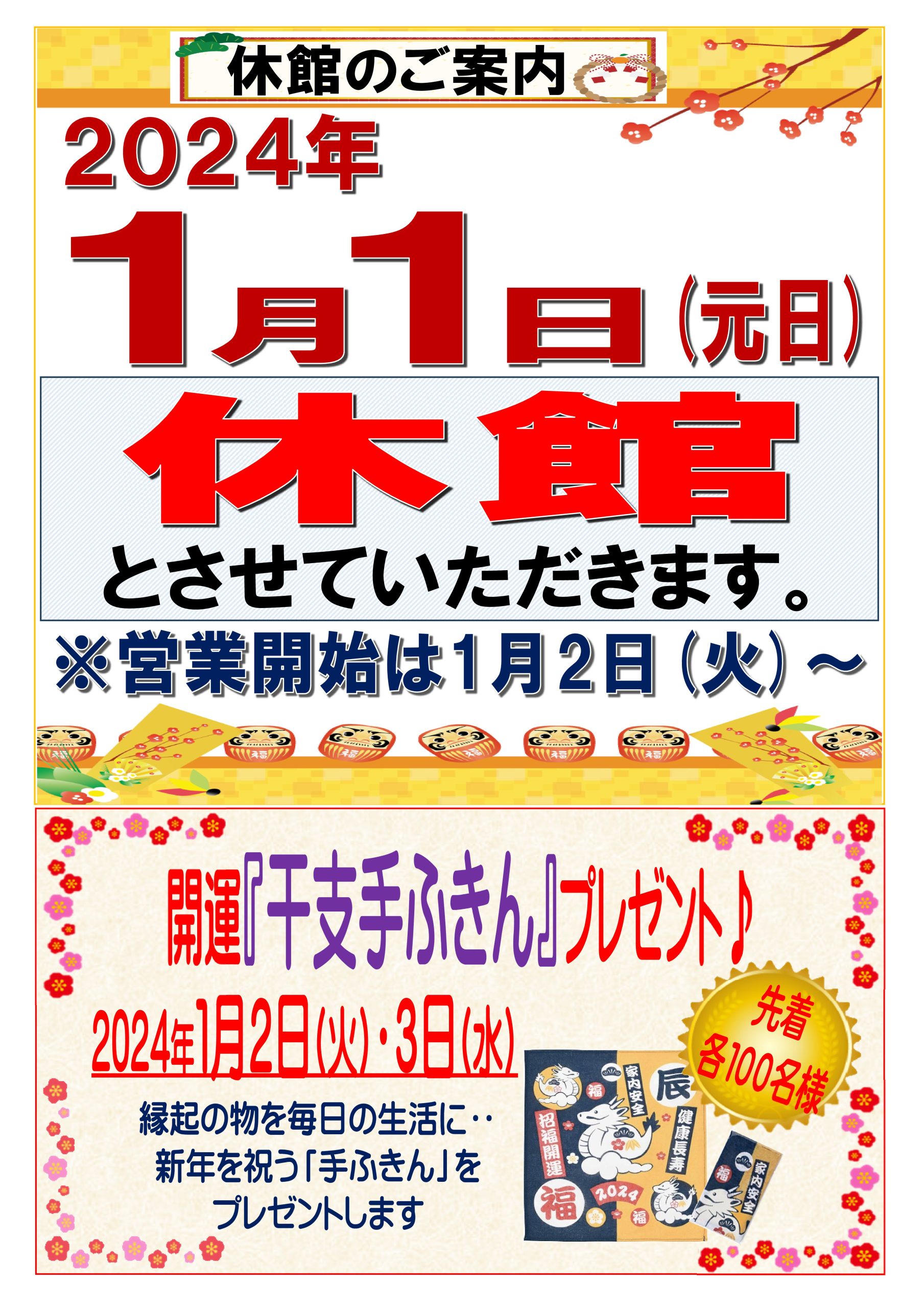 3. 2024年1月1日(元日)は休館します‼